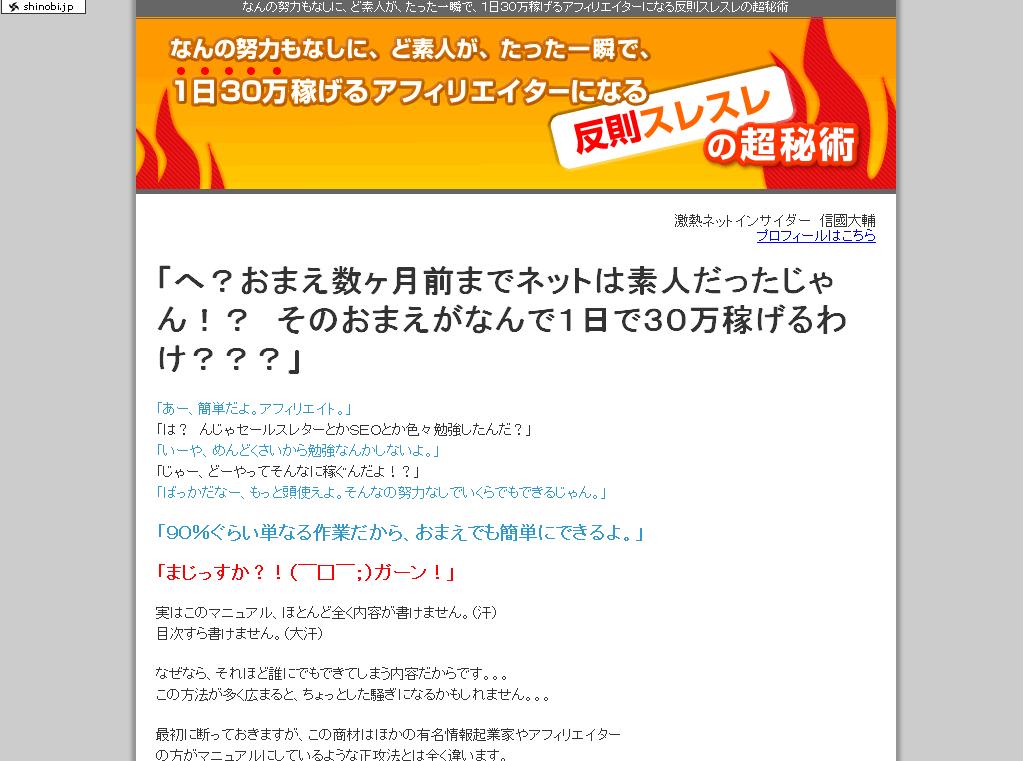 「なんの努力もなしに、ど素人が、たった一瞬で、1日30万稼げるアフィリエイターになる反則スレスレの超秘術 」