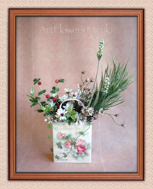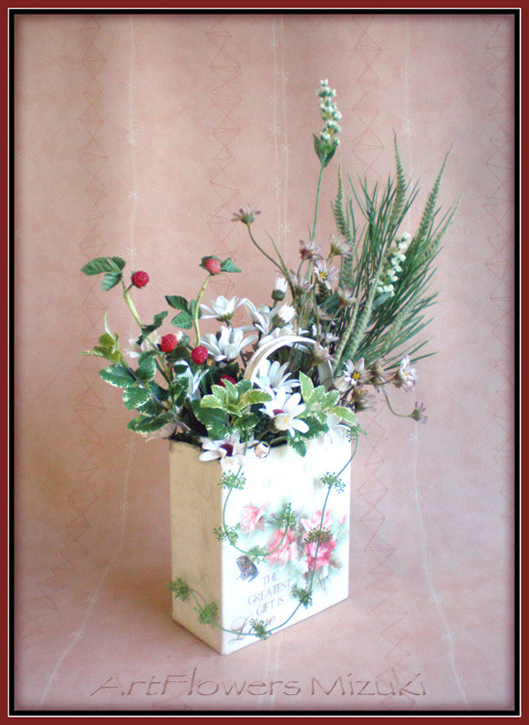 アンティークなブリキのバッグにはやっぱり野の花が