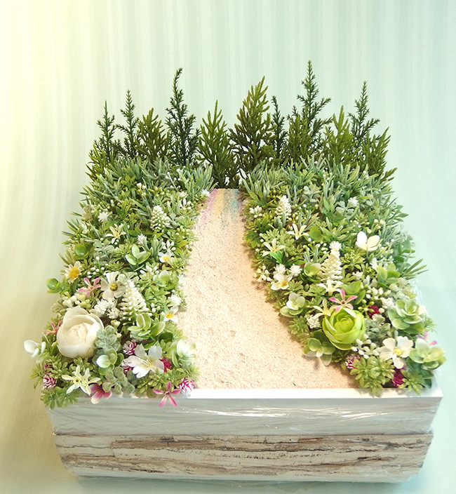 道の先端に5色に染めた砂を配し、特殊な方法で砂を固めてマット仕上げに