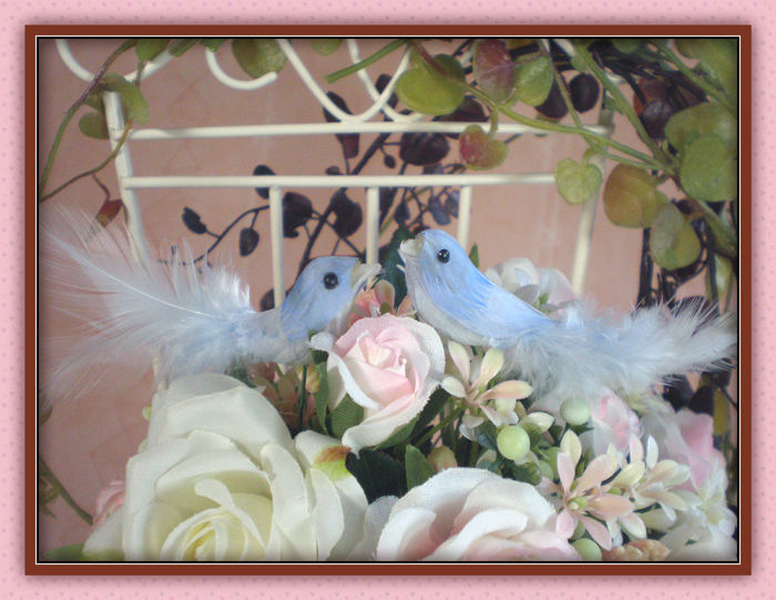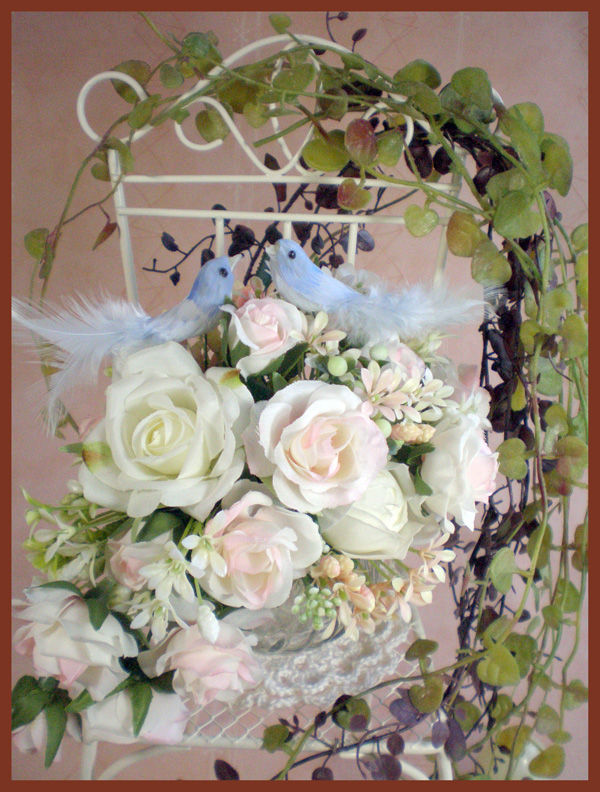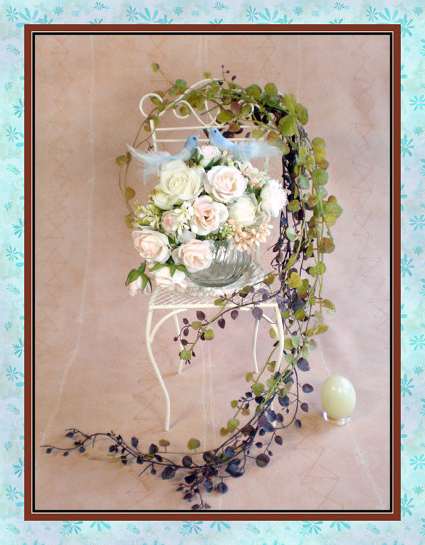 <作品No.10>青い鳥・椅子の上のミニブーケ