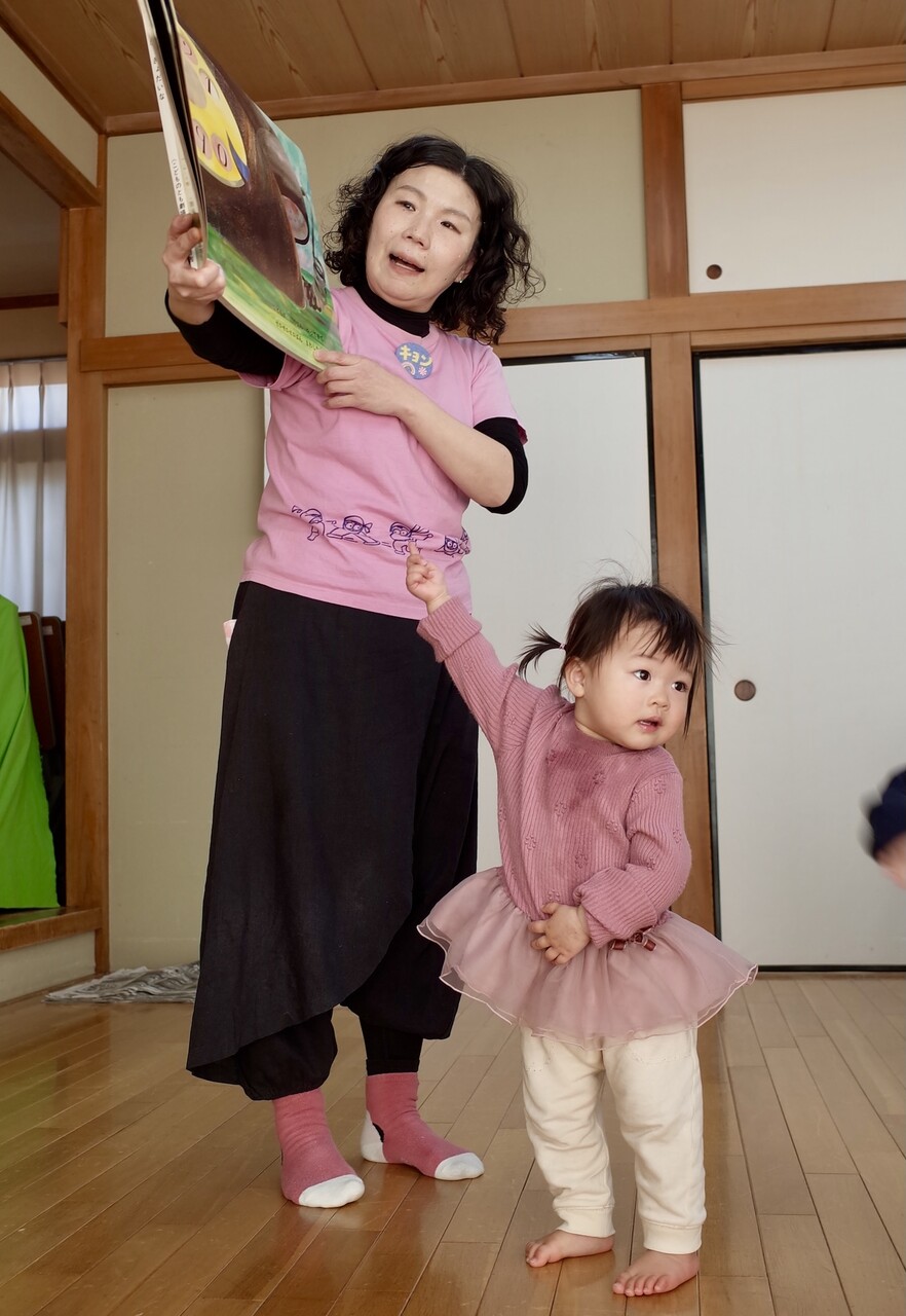 どんどん動いている子どもに「あ!そこめくらないで〜」