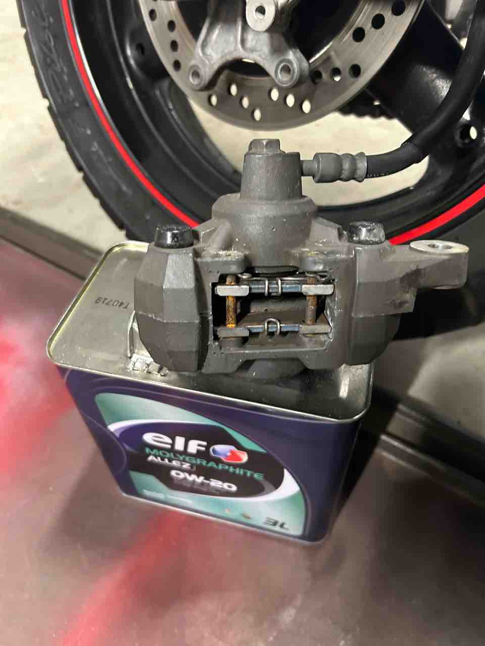 谷原店サービスの前田です。最近はバイクの細かいところが気になって、ブレーキのキャリパーなどを塗装してます。見れば見るほど気になるところが多いので、終わりそうにないです。