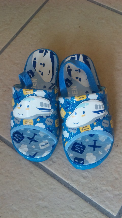 昨日、買い物に行くと【しんかんせん】のサンダルが売っていた。そうだ、ひろむにサンダル買おうと思ってたんだ〜