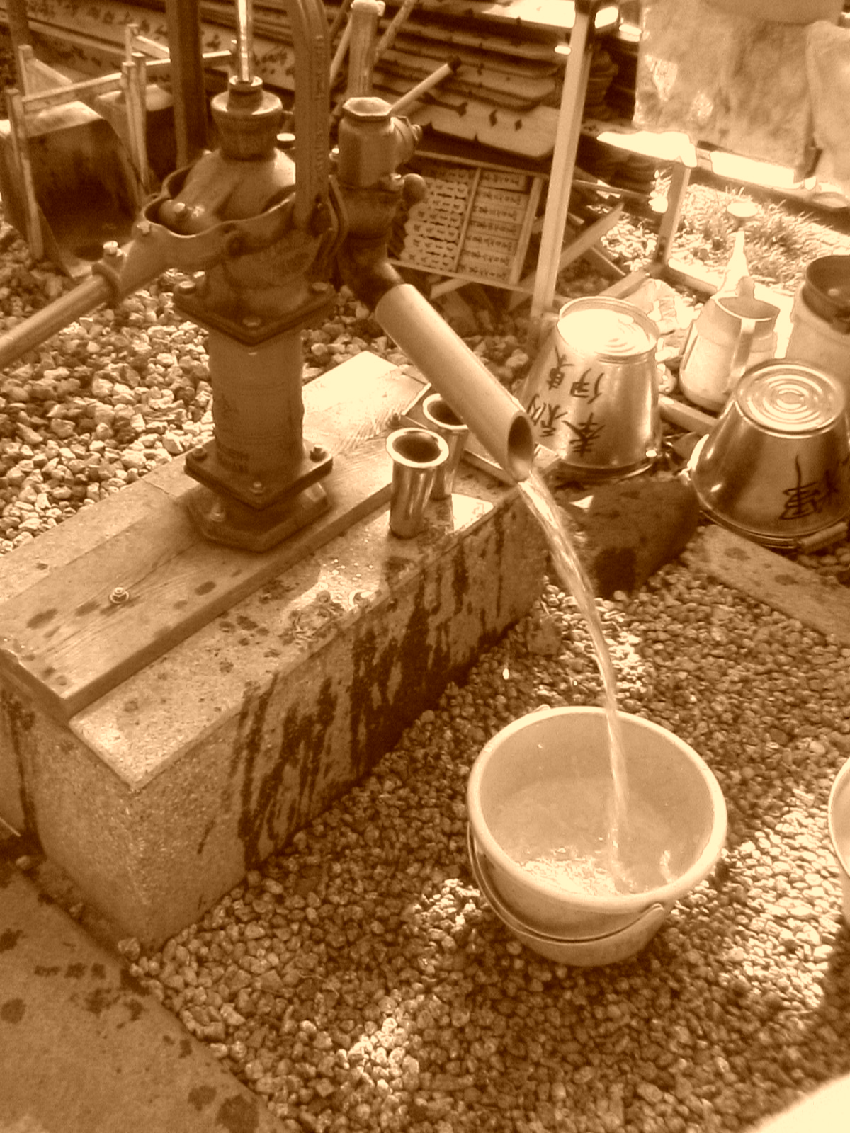 「風情があって良いね」なんてのんきなことを言ってはいけません!一度汲んでみればその辛さときたら、自動車のタイヤに自転車の空気入れで空気を入れているようなもので、中々水がでてきません!