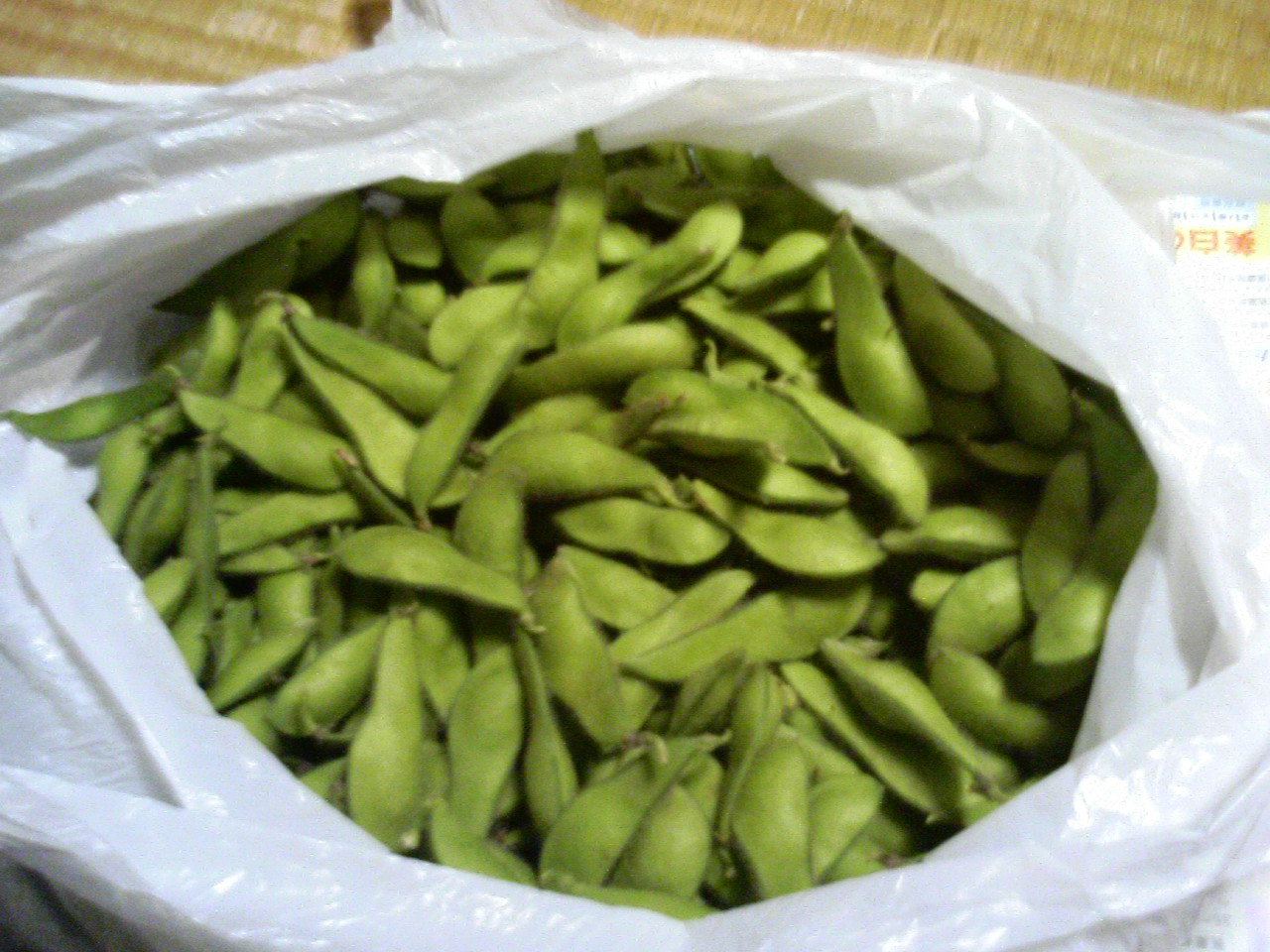なんでも今日のえだ豆は一番色艶が良いものみたいで、築地市場に出荷するんだと言っていました!行き先はおそらく料亭に行くのでは・・・と話していたのでこれは貰えないと遠慮すると、「大丈夫、撥ねだし物だから」と聞いて安心していただきました♪