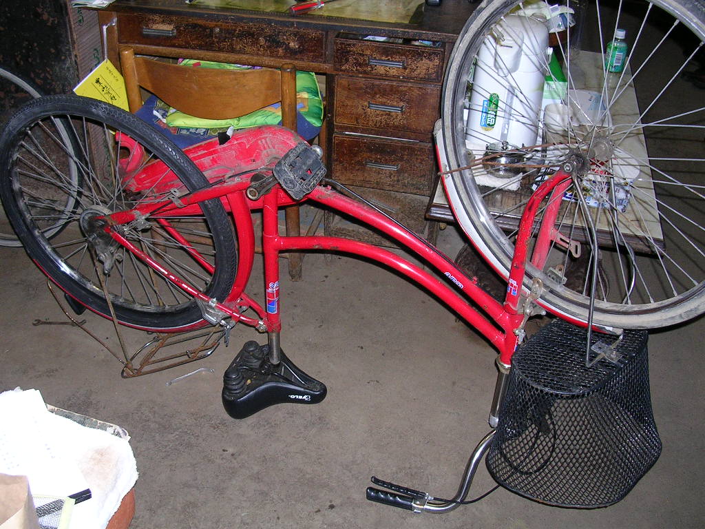 普通に自転車に乗っていたら突然「バッン!」という大きい音がして、リヤタイヤの空気が抜けてしまいました。普通パンクって朝起きて乗ろうとしたら空気が抜けてたっていうのがセオリーだと思うんだけれど、乗っていて破裂するなんてよっぽど自分が重かったか空気がパンパンに入っていたかのどちらしかないよねぇ・・・