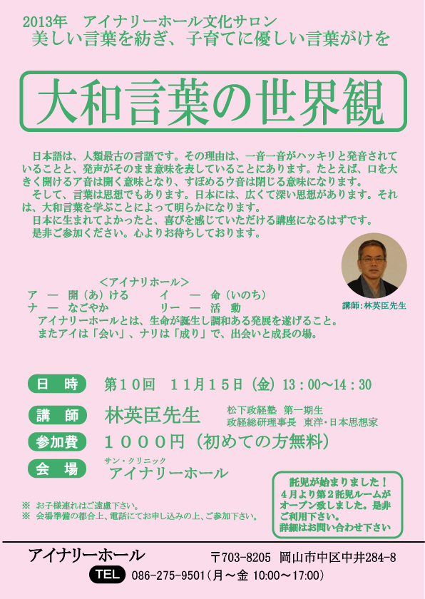 林英臣先生「大和言葉講座」のご案内です。