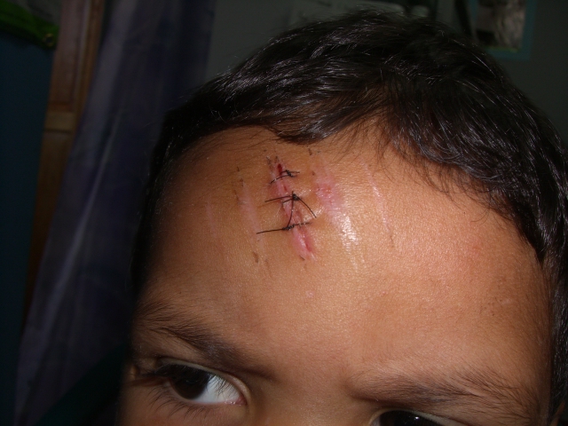 おでこのキズは、元気な印?