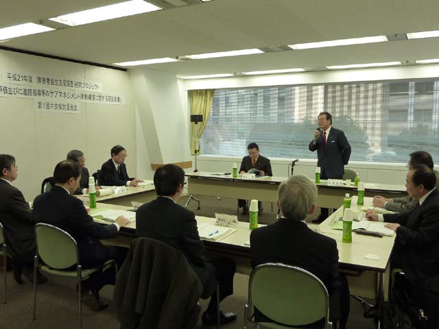 平成21年12月25日、委員にご就任いただいた佐賀県・古川知事、障害者職業総合センター・池田担当理事、全重協・栗原会長、全国社会就労センター協議会・星野顧問、全日本特別支援教育研究連盟・松矢理事長にご出席いただき、平成21年度障害者保健福祉推進事業(障害者自立支援調査研究プロジェクト)「職業能力評価並びに進路指導等のケアマネジメント体制構築に関する研究事業」における第1回の中央検討委員会を東京にて開催しました。