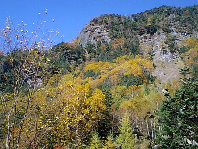 このあたりの紅葉は赤がほとんどなく、黄色ばかり。寒さによって、その黄色もあまりきれいとはいえない年もあります。