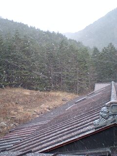 21、22日かけて赤岳鉱泉冬の名物の人工氷瀑(アイスキャンディ)の骨組み(足場)を組みました。