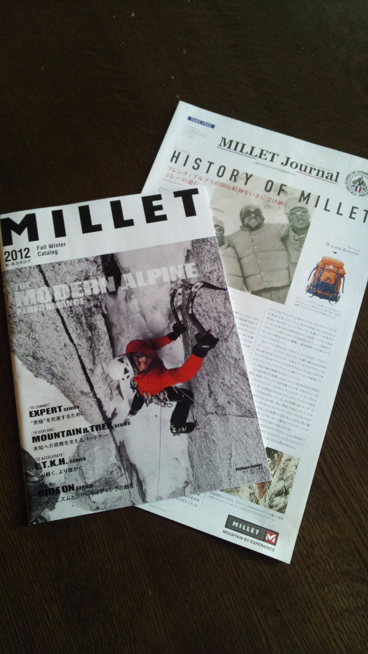 鉱泉玄関にMillet Journal(無料配布)とMilletの2012秋〜2013冬カタログ(閲覧用)が置いてありますので、お気軽にご覧になってください☆