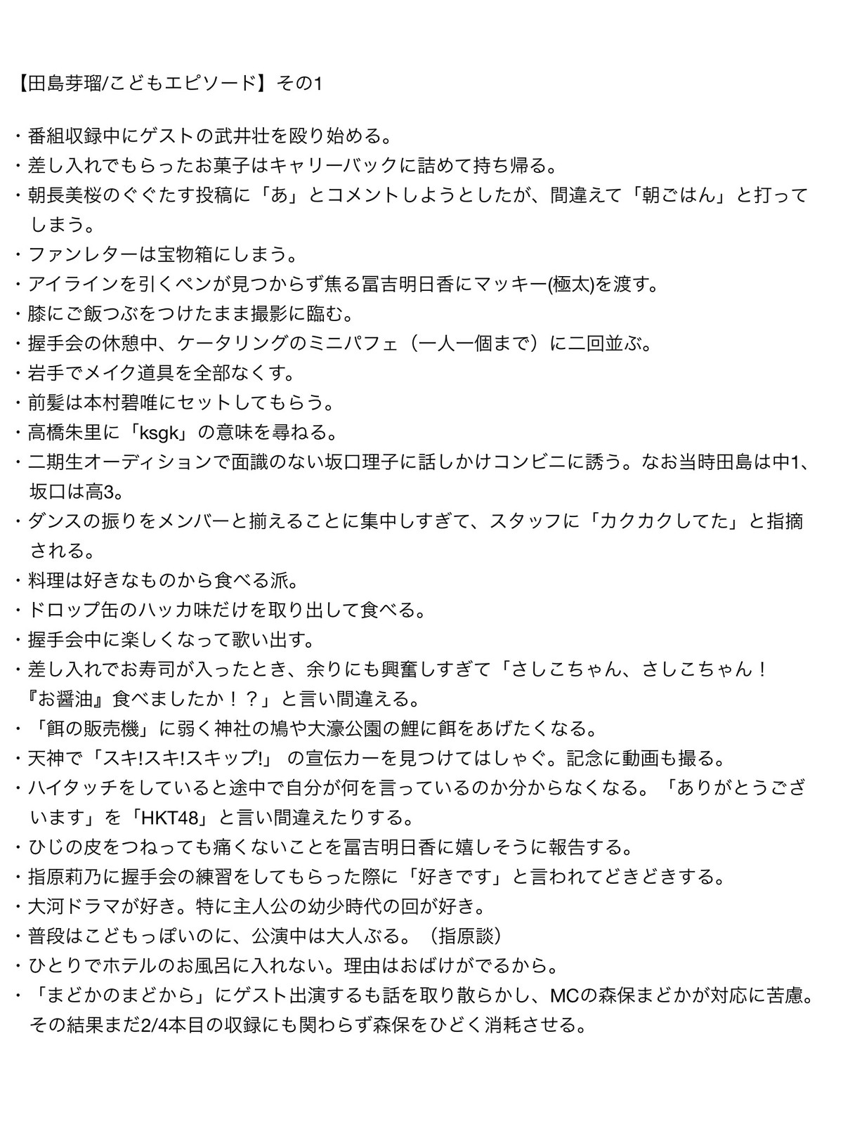 【田島芽瑠/こどもエピソード】