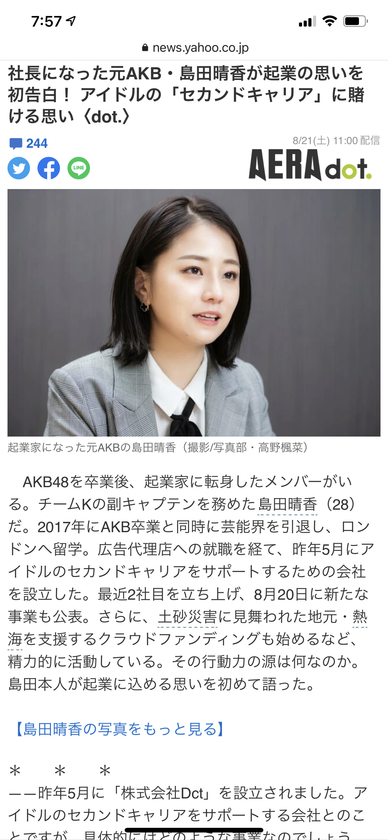 勤務などを経て、20年にアイドルのセカンドキャリアを中心とした女性支援のベンチャー企業・株式会社Dctを設立し、代表取