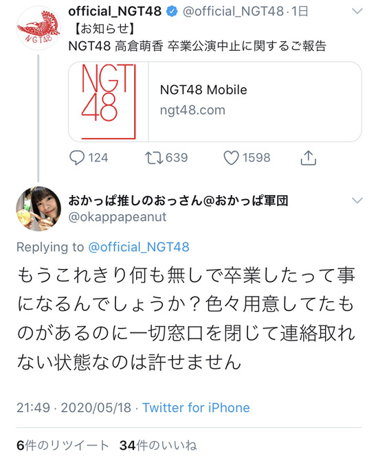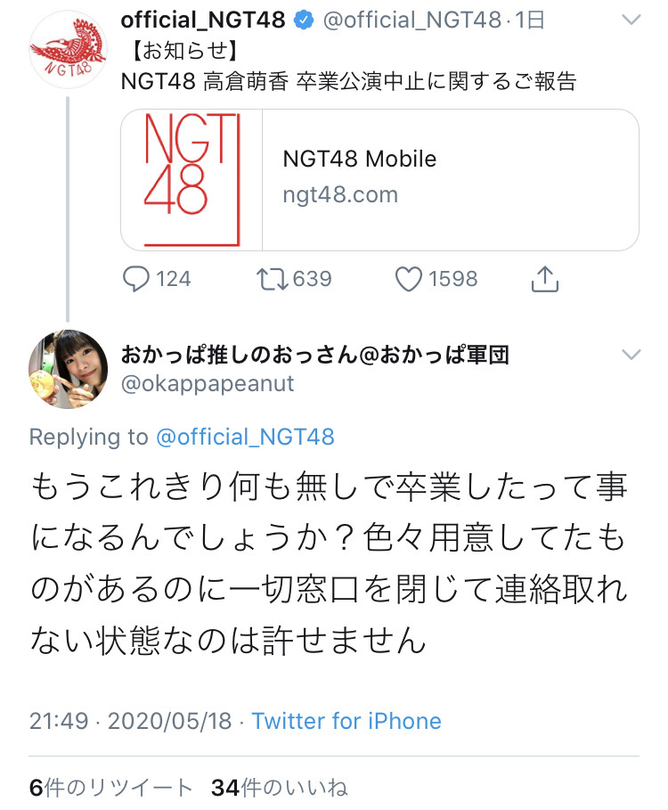 1:47の素敵な(東京都) (7段):2020/02/18(火) 22:11:37 ID:.net高倉萌香@moeka_ngt48