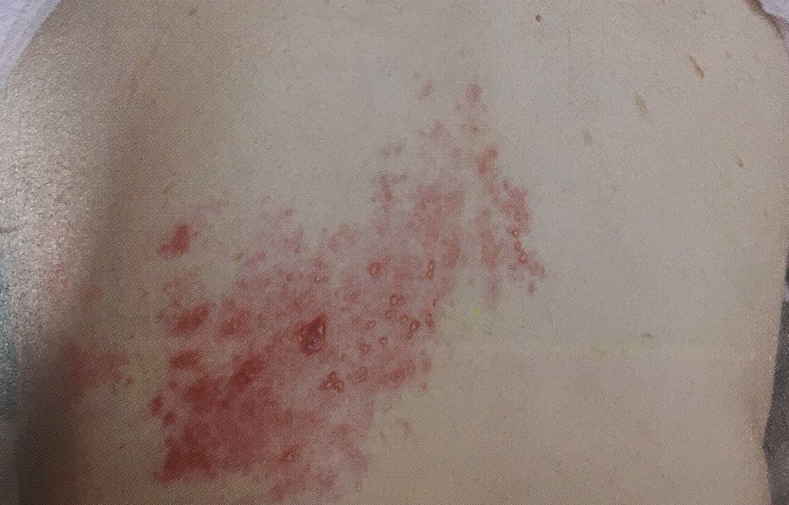 簡単に言うと、小さい頃に水痘(水ぼうそう)として初感染として発症し、免疫力が低下したときに、その水痘ウィルスが、再び悪さ😈をするのが、帯状疱疹です😰