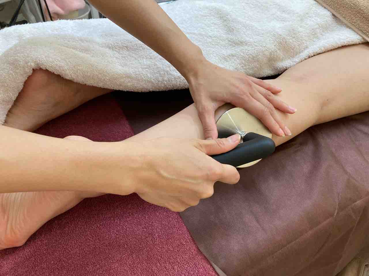 インディバで温めた後はオイルマッサージで仕上げます。