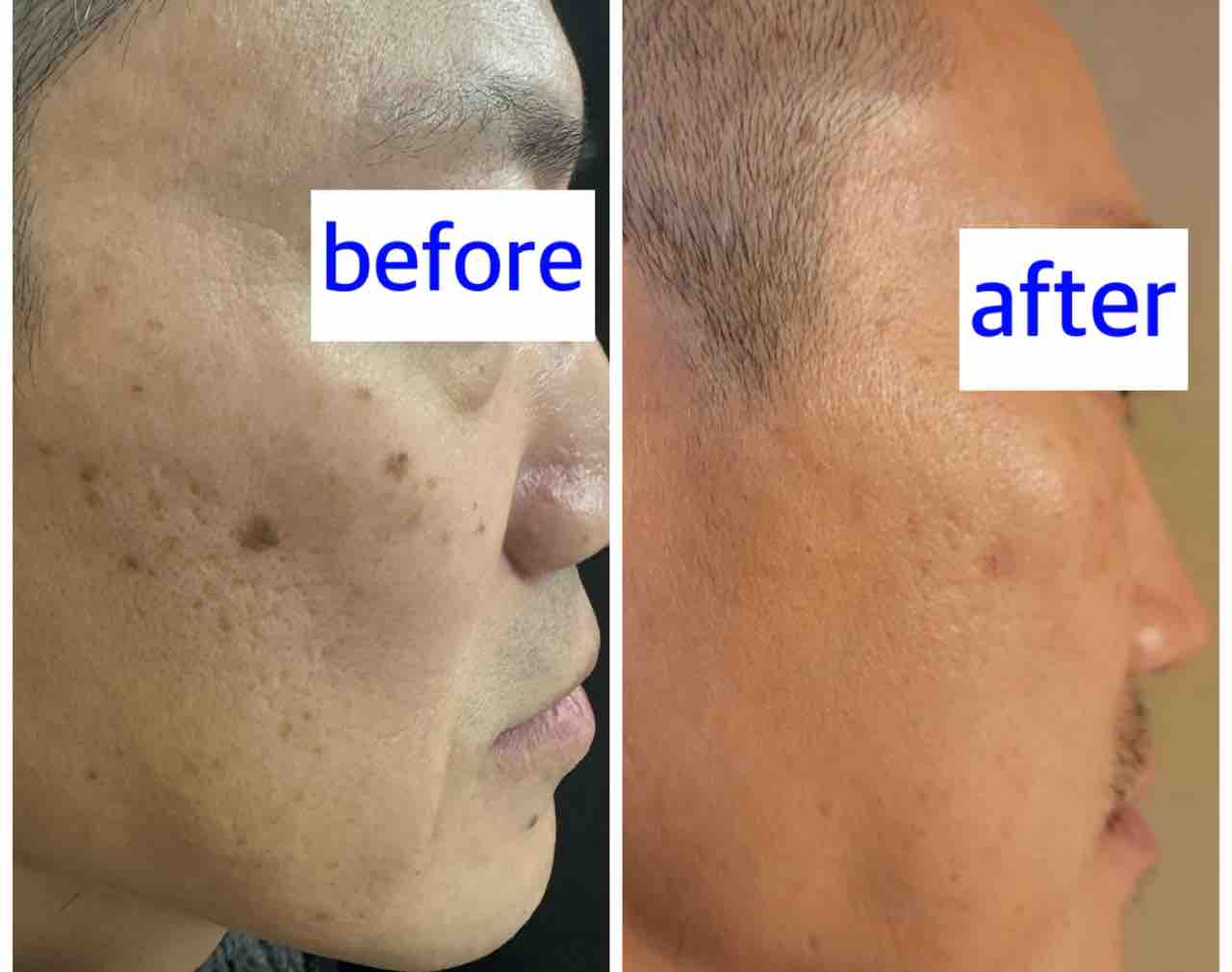 女性と違って、ほとんどの男性はお化粧をしないので、メイクなどで隠せないため、シミがあると老けて見えますので、ぜひお手入れを前向きに検討してください(^^)