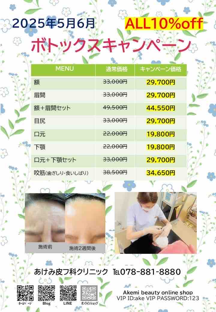 あけみ院長に相談し、額と眉間にボトックスを打ってもらいました✨🤗