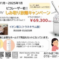 ピコトーニング初キャンペーン🎉 こんにちは、院長の姜 朱美(きょう あけみ)です。皆さま、お盆休みはいかがお過ごしでしたか⁉️本日より通常通り診療しております(^^)さてさて、先日からのブログで。あけみ皮フ科クリニックにピコレーザー、ピコウェイが導入されたのは、すでにご存知いただいている方も ... 2024年08月16日 | あけみ先生ブログ , ⚫︎キャンペーン
