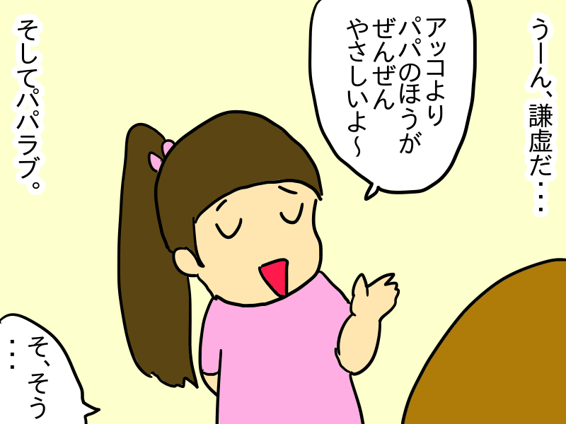 「そんなことないよ、パパのほうがぜんぜんやさしいよ~」