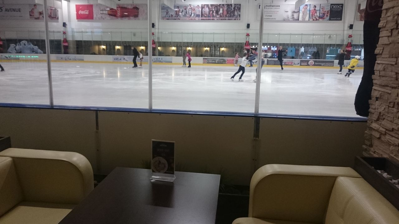 食事をしながら、スケートをしている人たちを眺めるのも一興。