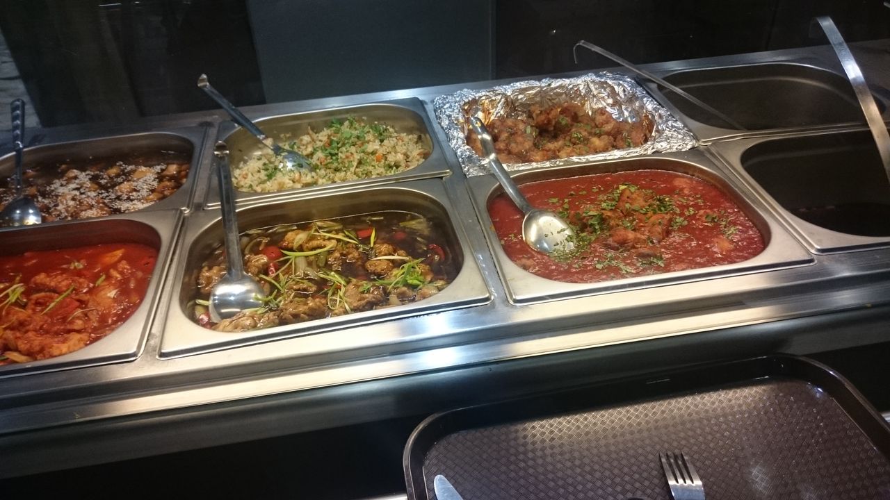 バイキングではなく、カウンターの向こう側にいる人に注文して、皿に盛ってもらいます。