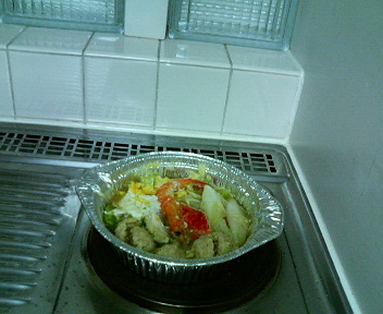 と、ゆうワケで今夜の私のひとりぼっちのディナー。。『塩ちゃんこ鍋380円!』 わぁ〜!おいしそ〜♪・・・(*_*)
