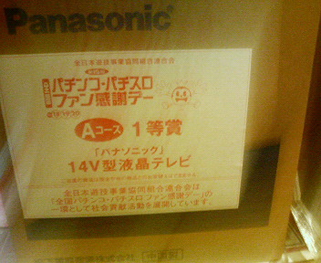 突然自慢ですが私はクジ運が結構良い方です☆つい先日も久々に少しだけスロットをやって見事に負け、ちょっとふてくされてたら『ファン感謝DAY』のくじ引きが。。そしたら何と、1等の液晶テレビが当たりました♪