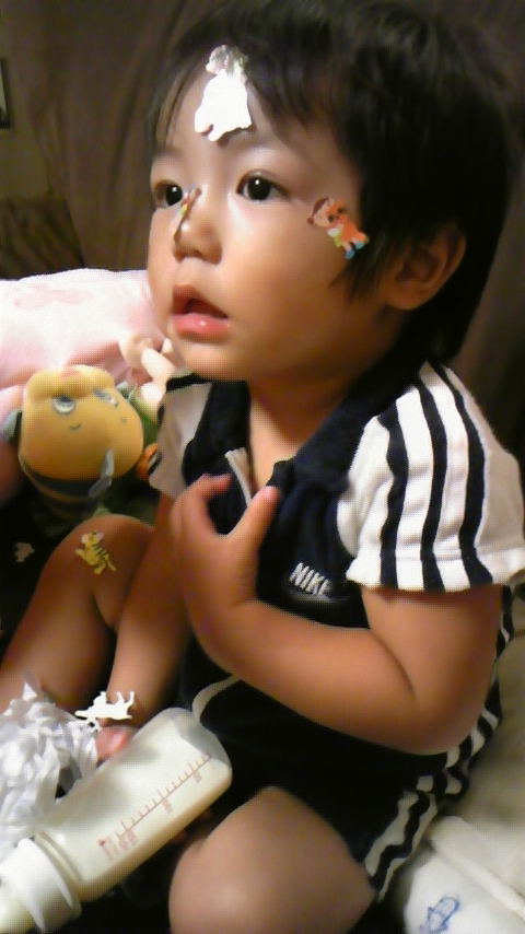 顔にシールを貼りまくられてる図