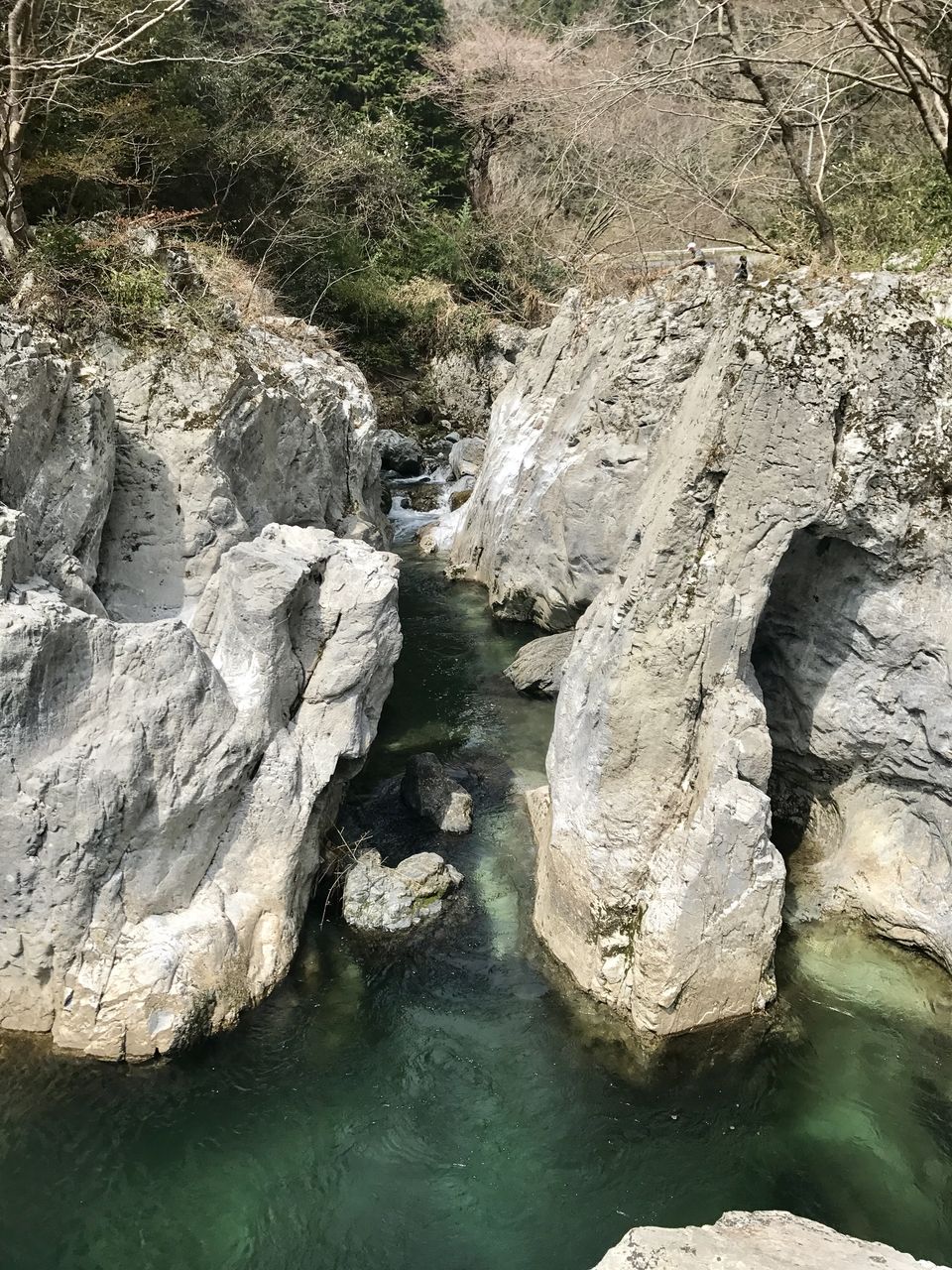 新庄川の清流に洗われた石灰岩が