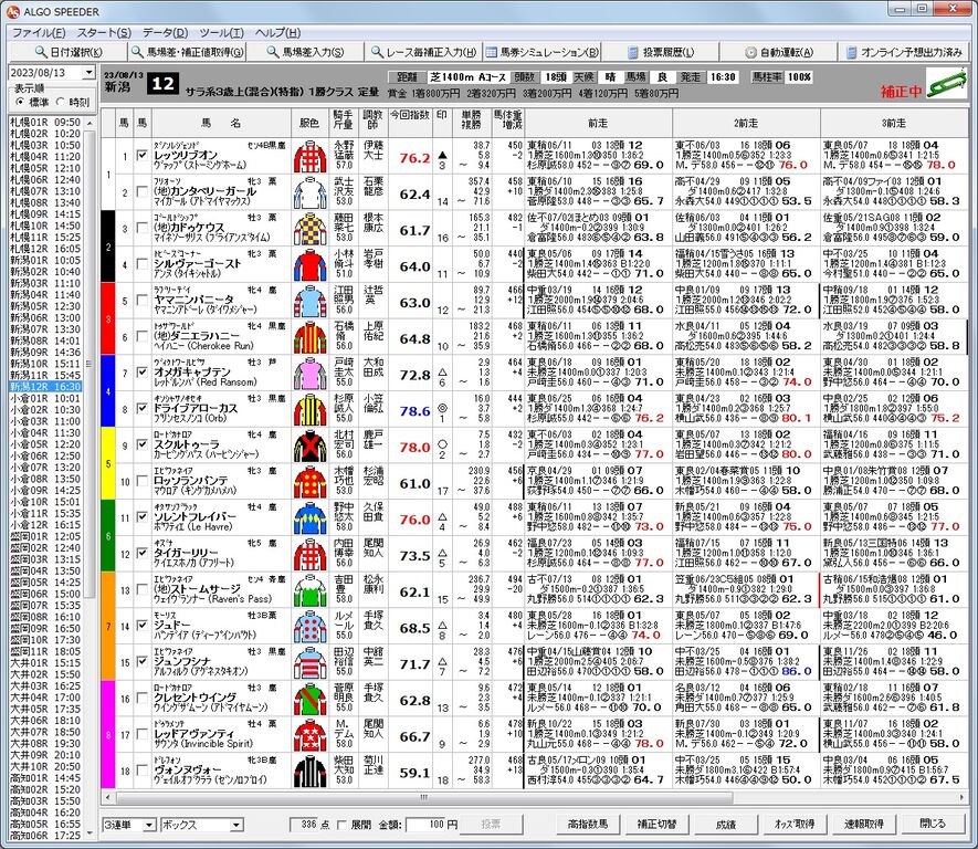 ⑨5位、⑯8位、⑬1位 3連単 BOX 219,420円(336点)