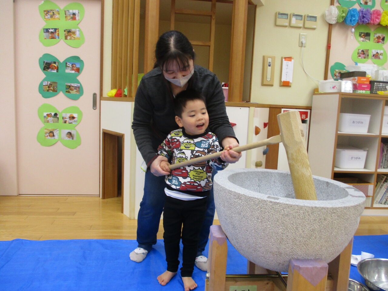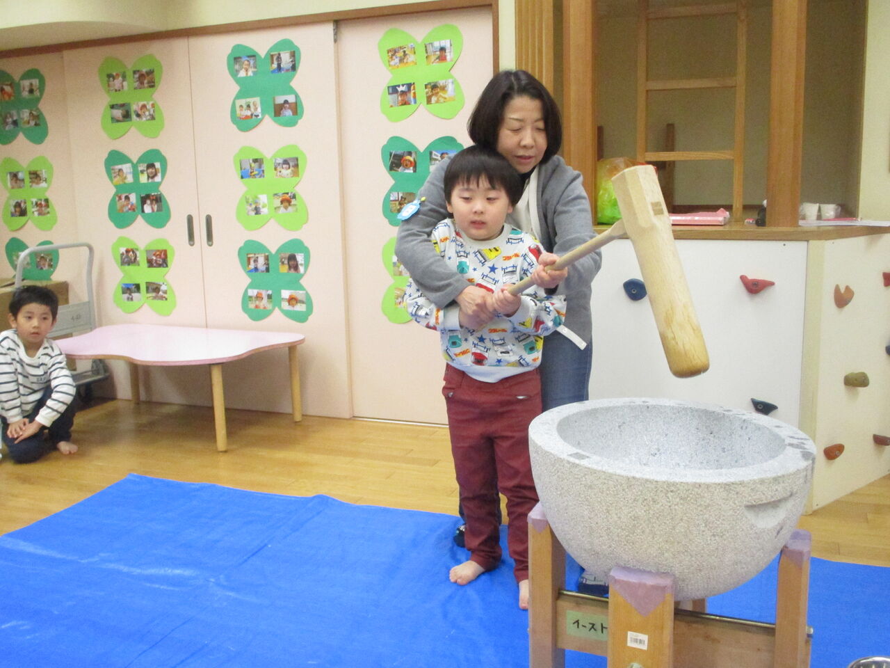 子どもたちと一緒におもちつきをしました