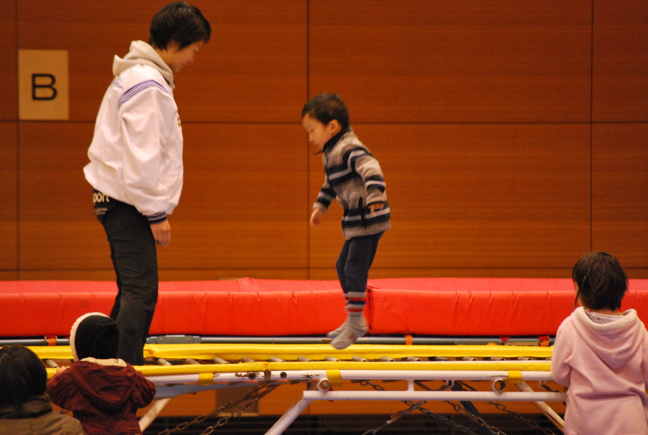 初めての子供も、指導者と一緒に楽しくトランポリンを体験しました♪