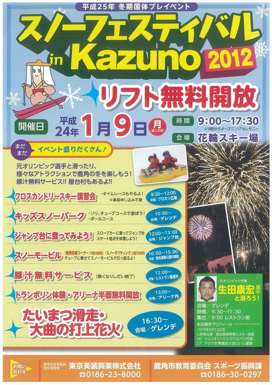 昨日1月9日(月)、寒空の中「スノーフェスティバル in KAZUNO 2012」が行われました。