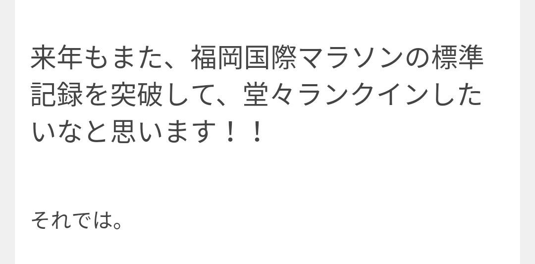目標は福岡国際マラソンの標準記録を突破して、福岡国際マラソンを走る事!!