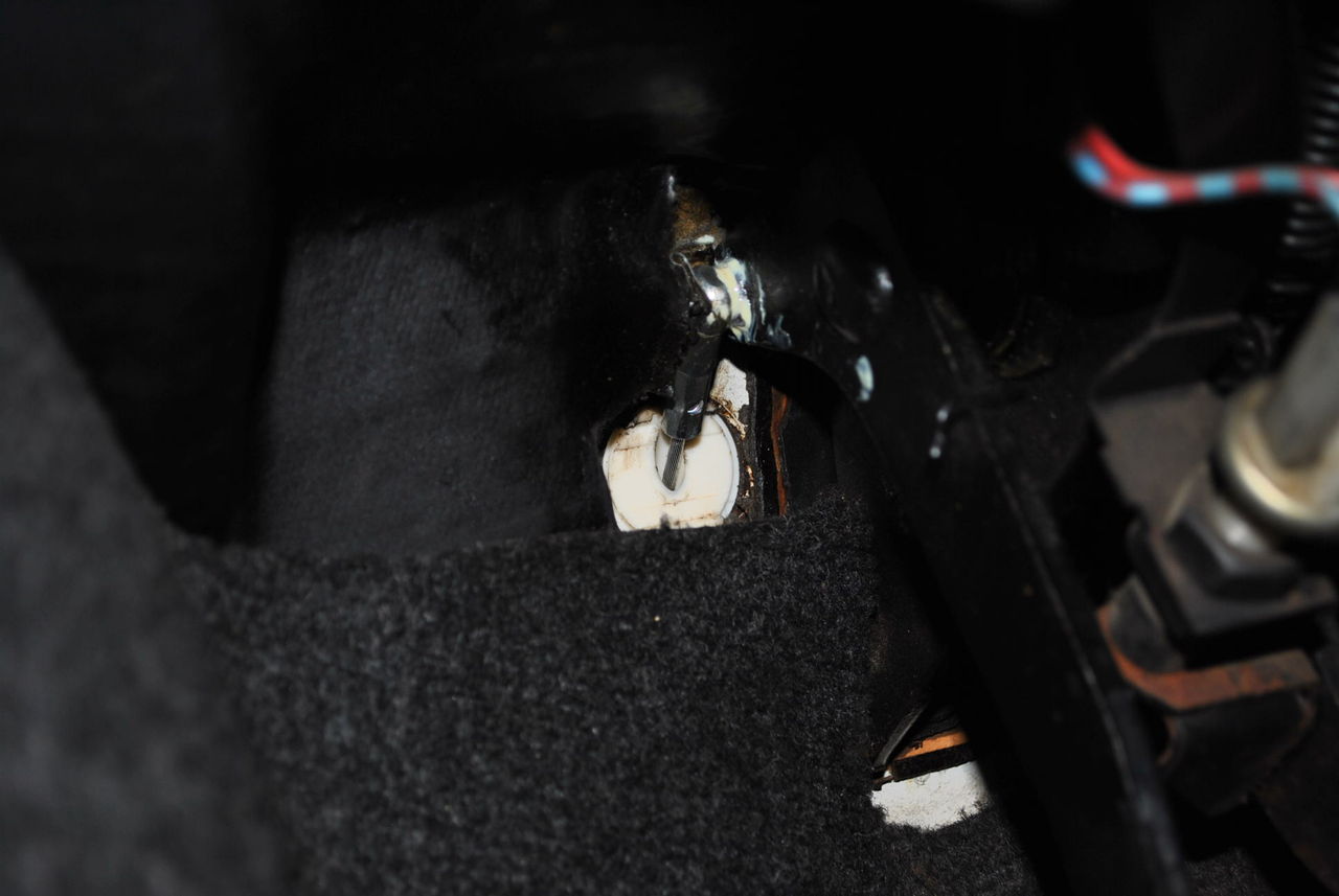 クラッチペダル側の白いカバーは