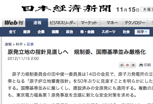 原子力規制委員会の田中俊一氏が、「原子炉立地審査指針」を50年ぶりに改定すると表明しました。裏返せば、50年間、スリーマイルやチェルノブイリ事故が起きても、なかったことにしてきたわけです。
