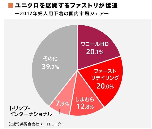 以前に日経のシェア調査を紹介したことがあります。若干、定義などが異なるかもしれませんが、最新のデータでは、ユニクロ、しまむらが急増し、トリンプは4位となっているようです。