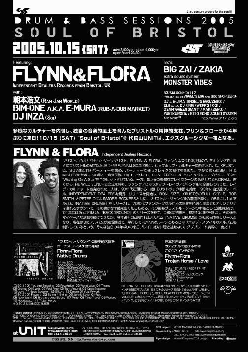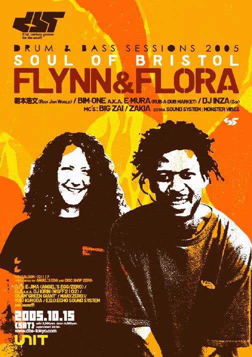 上のフロアUNITではブリストル・ジャングルの至宝、FLYNN & FLORAを迎えての“DRUM & BASS SESSIONS 2005”。上から下からブリストル以上にブリストルな夜をお届けします。