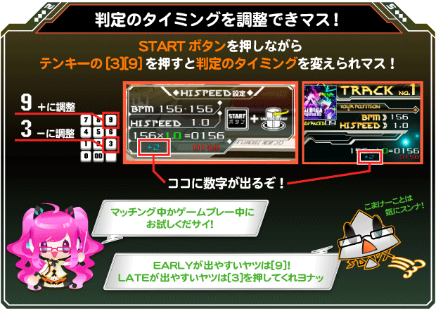 Σ△<速報キター!!たった今この瞬間から!判定のタイミングが調整できるようになっただとーッ!?!?スタートボタンを押しながらテンキー「3」「9」…!なるほど便利ッ!