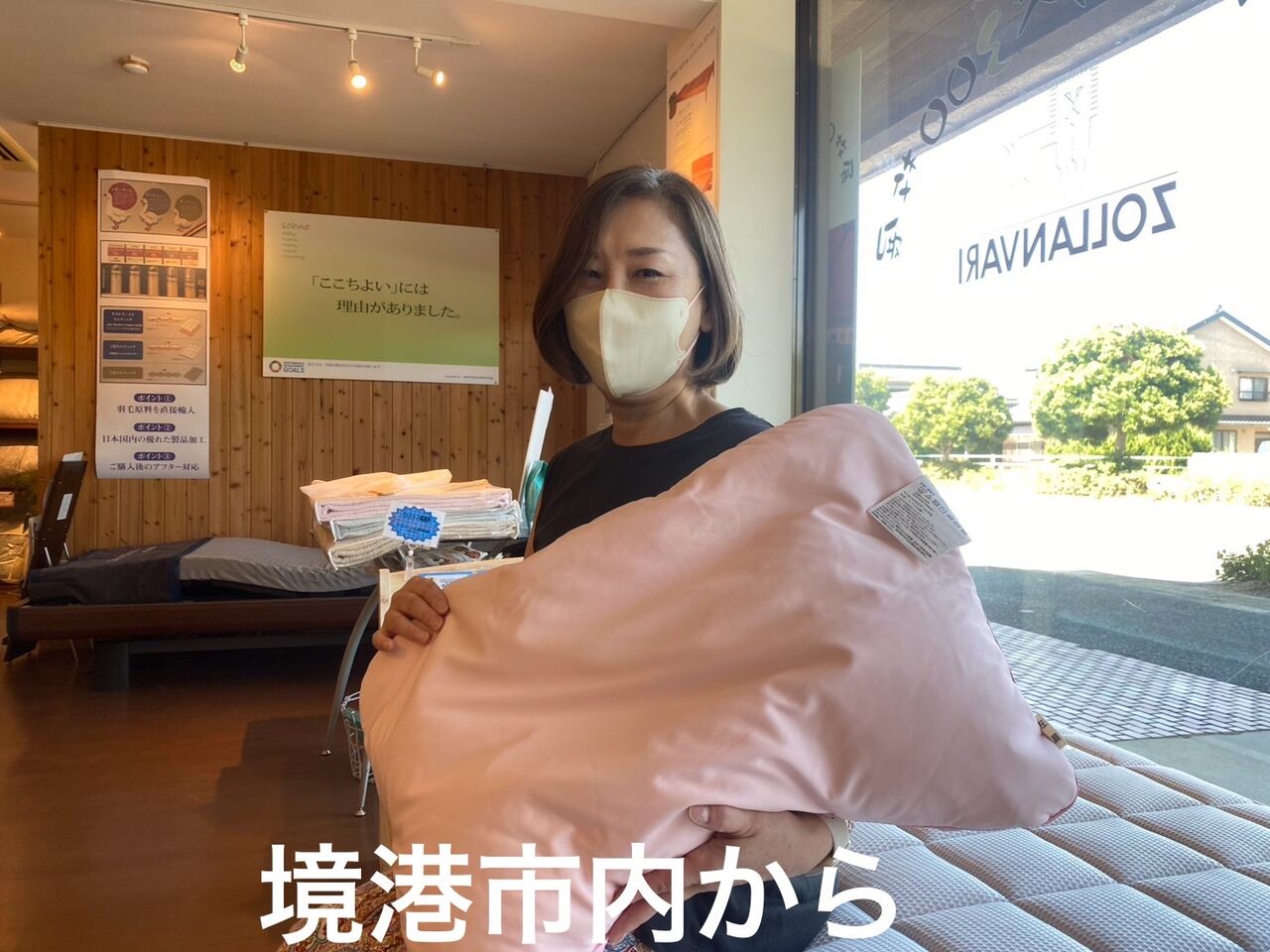 2025年07月25日 ~肩凝り・首の痛み・ストレートネック~ カテゴリ:オーダー枕 (本店) 境港 by anminzoku 昨日、ご来店されたT様。周りで当店のオーダー枕を使っている方から評判を聞き、立ち寄ってくださいましたずっと気にはなっていたそうです。首を直接優しく支える、女性に人気のオーダー枕を選んでいただきました。少しでも症状が良くなると良いですねまた、ご来店お待ちしております