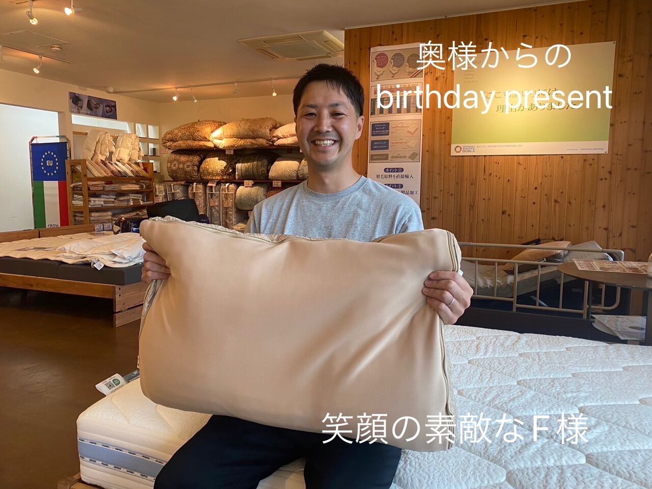 2025年05月26日 市内F様 カテゴリ:オーダー枕 (本店) 境港 by anminzoku 今月お誕生日を迎えられるF様。週末ご家族で来店されました!奥様からオーダーメイド枕のプレゼントだそうですご主人の健康に気を使われ、なんとも優しい奥様ですね~(´∀`*)大切にお使いくださいご来店、ありがとうございました。