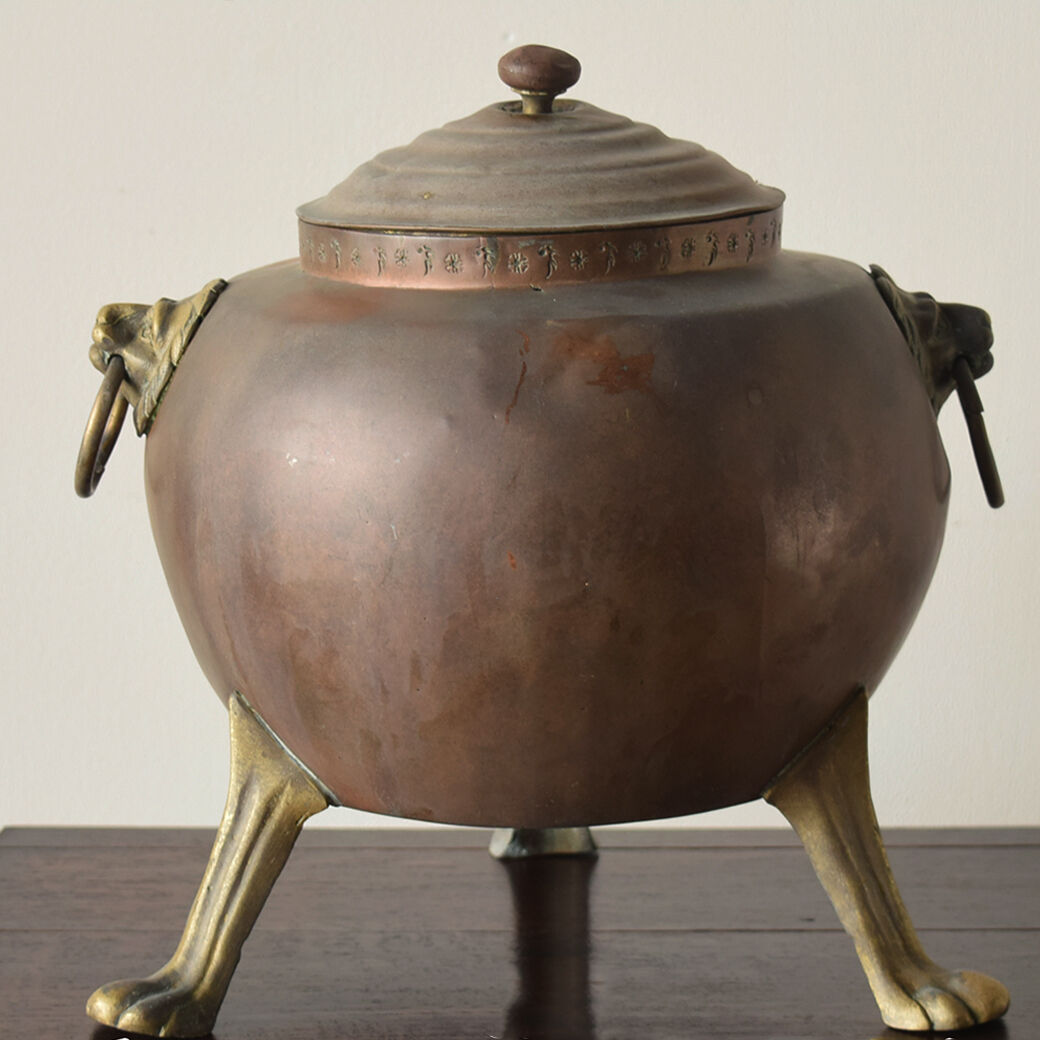 真鍮の取手と脚が可愛らしい銅製(カッパー)のポット。
