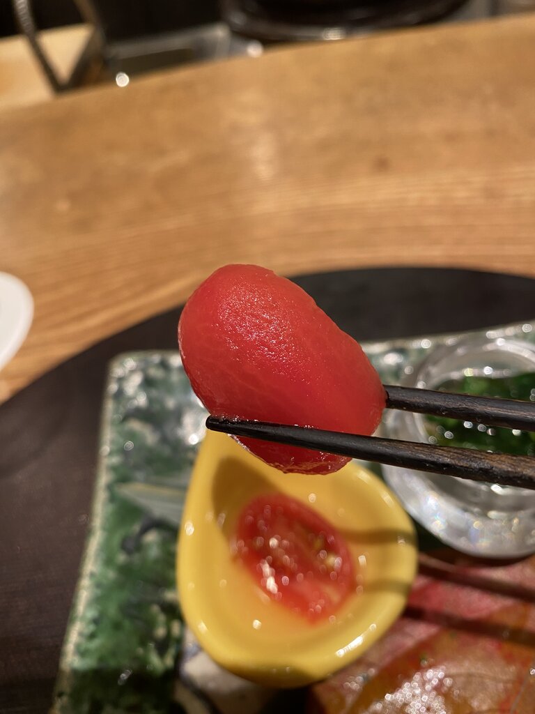 湯引きしたトマトを酢橘酢で。