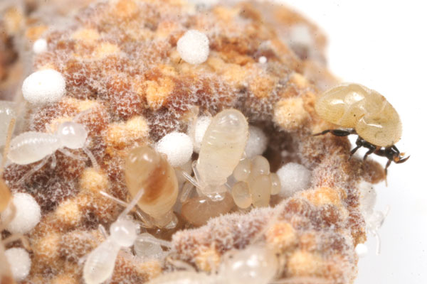 タイワンシロアリは、巣が拡大すると、菌園がいくつも作られるので、女王の場所はなかなか見つけることができません。