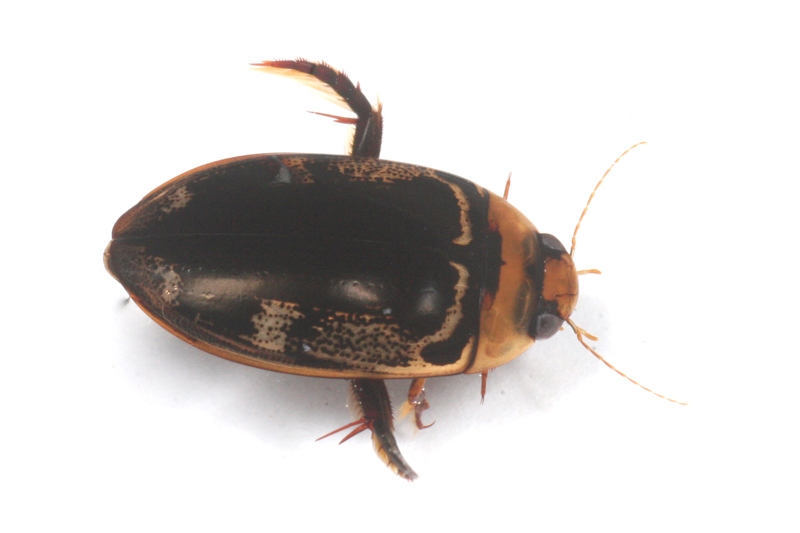 リュウキュウオオイチモンジシマゲンゴロウが泳いでいます。