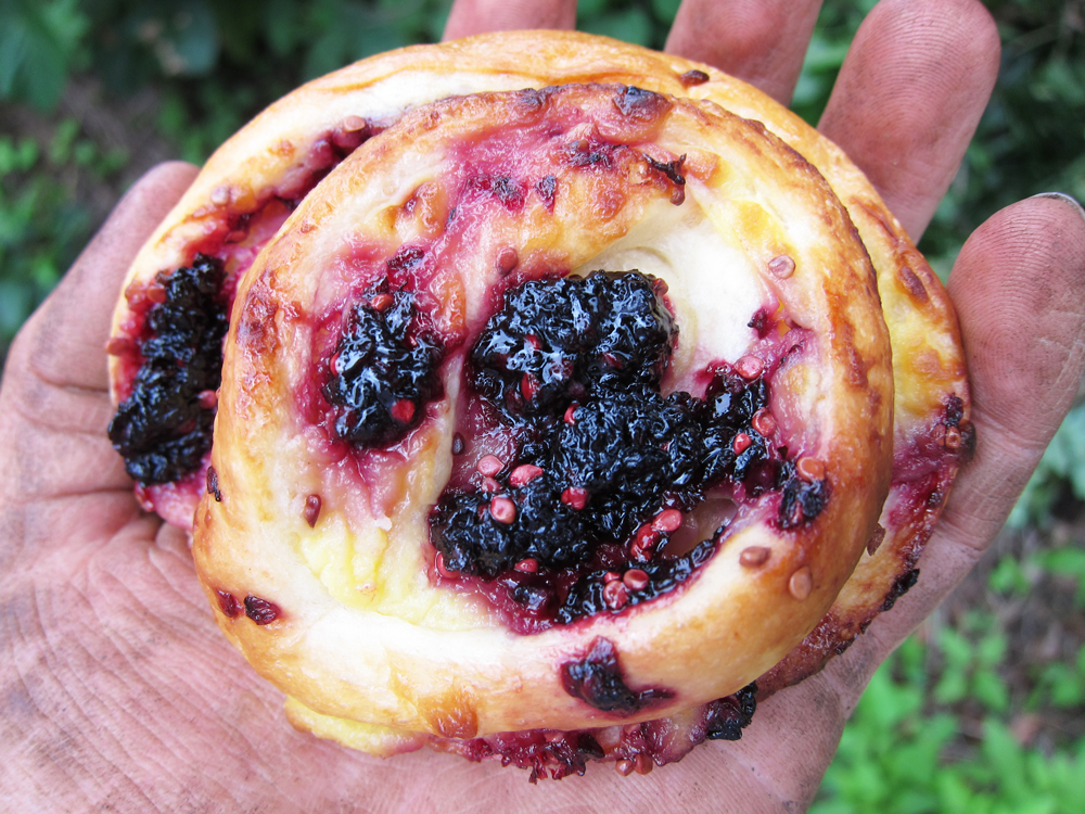 この日に食べたのは、ふわふわのカスタードが入ったクリームパンと、甘酸っぱい桑の実がたっぷりのった、桑の実カスタードパンです。