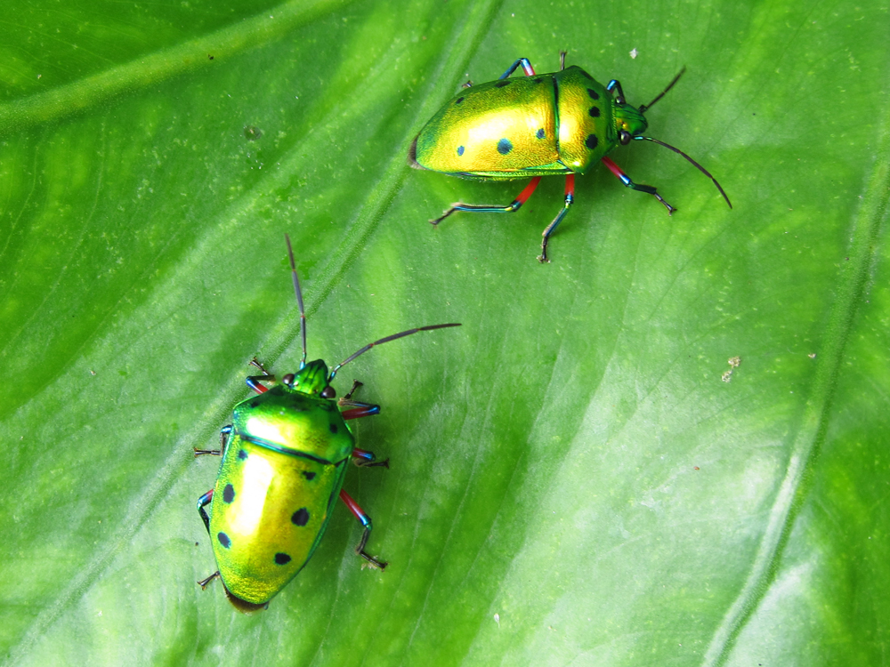緑色に輝くナナホシキンカメムシ。