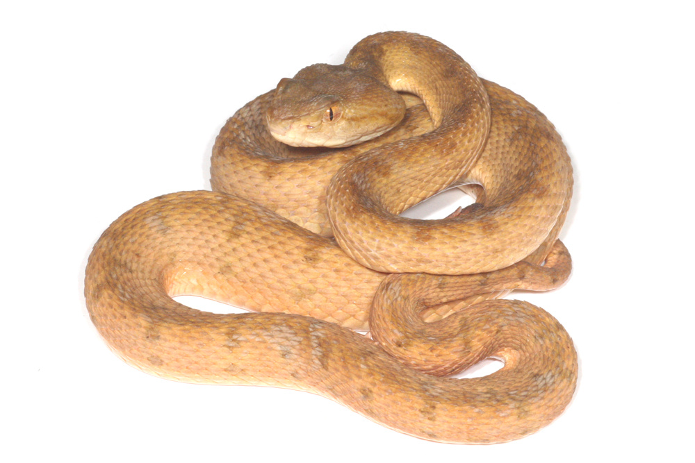 サキシマハブには、上の通常の個体以外に、このように黄色やオレンジの色彩変異個体が多くいるのです。